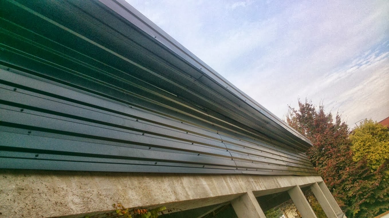 Između dvije krovne plohe postavljena je aluminjski žlijeb-uvala . Izrada nadstrešnice nad stubištem