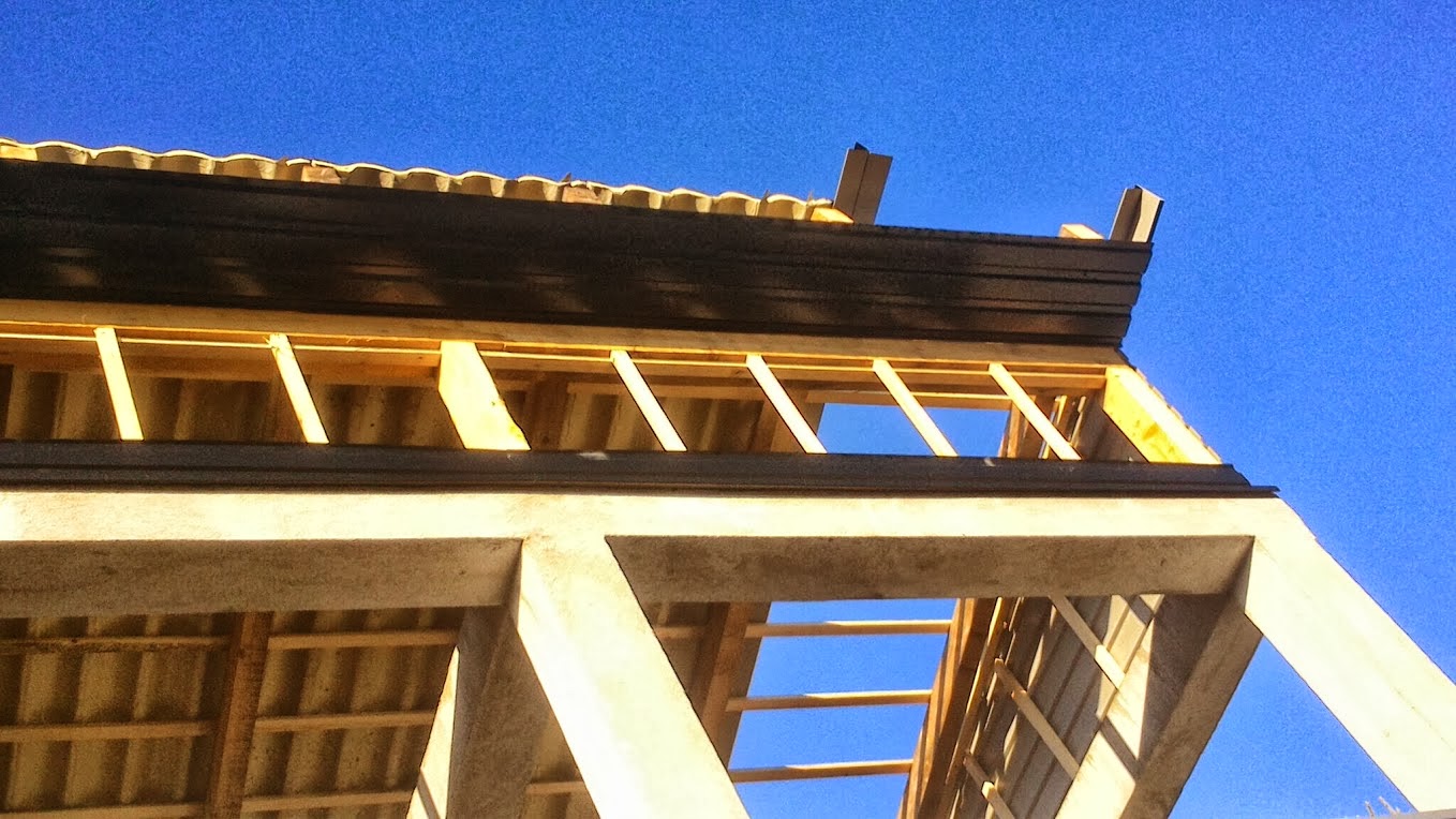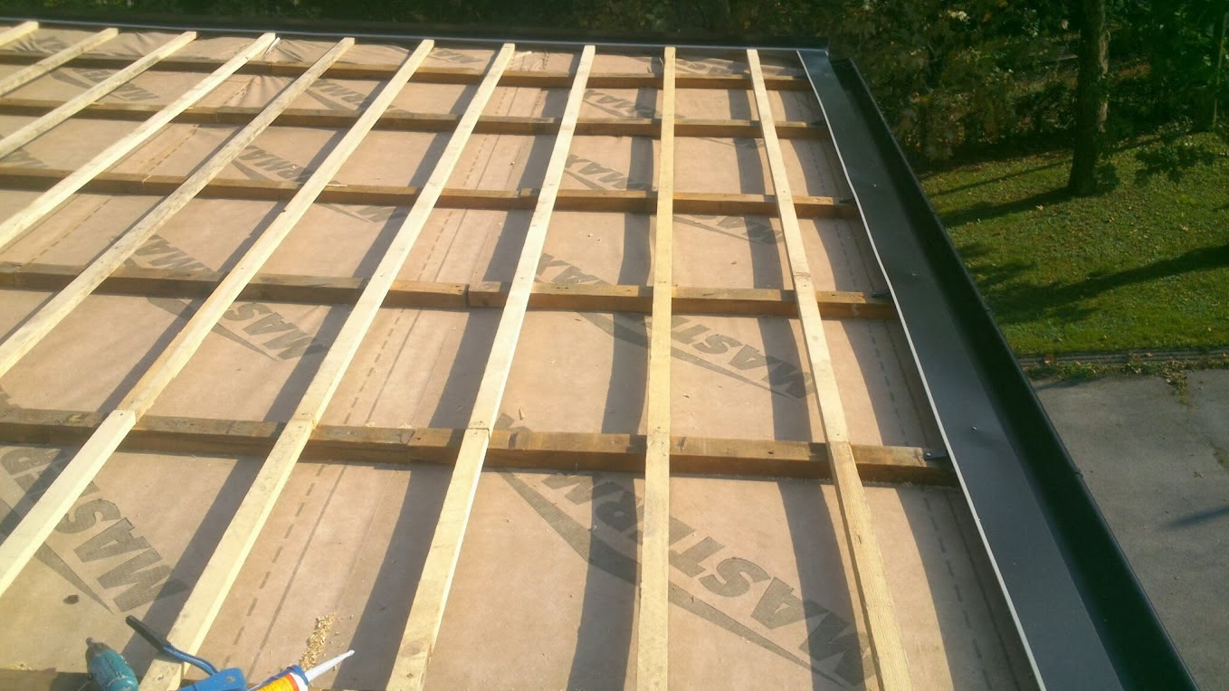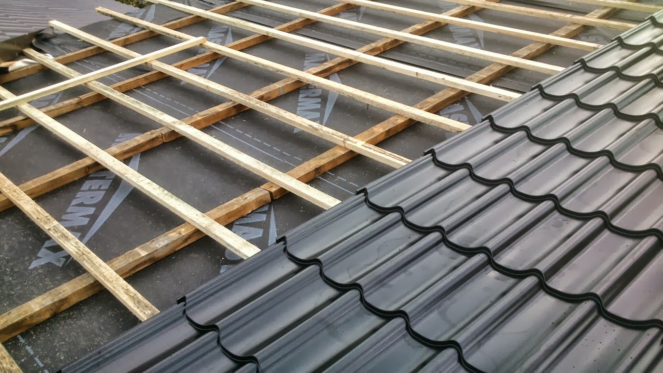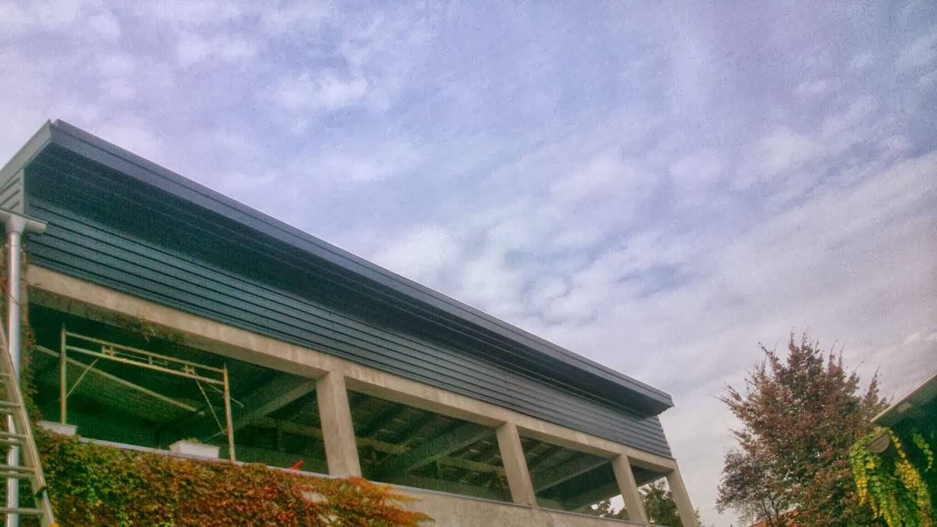 Demontaža salonit ploča na dvije postojeće plohe i montaža crijep ploče Lindab ispod koje je položena paropropusna folija 140g/m2 preko rogova . Korišterna letva 4x5 i kontra gredice za zračni prostor 5x8 cm. Izgradnja novog krovišta iznad terase od greda 10x14 i na njih je postavljen stari pokrov u obliku crijep ploče koja ima poliuretansku ispunu ,zaštićenu alunijskom folijom.